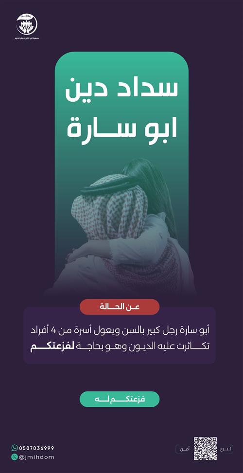 نقف اليوم مع أبو سارة لنعيده إلى حياة مطمئنة، ونرفع عنه هماً طال أمده.